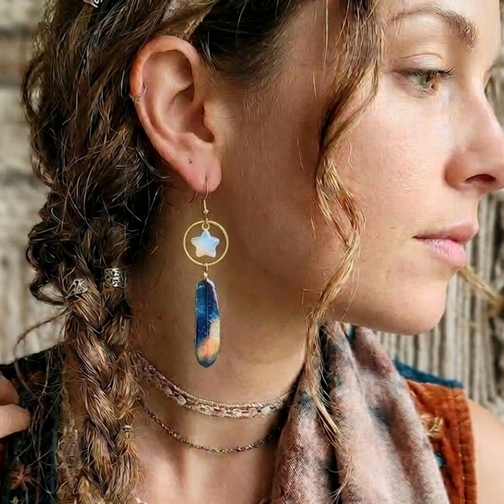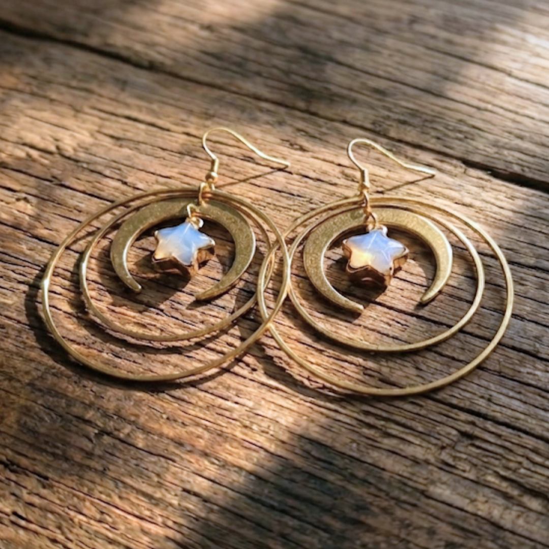 Celestial Orbit Earrings with Opalite Star Dangles - A Dreamy Dangle