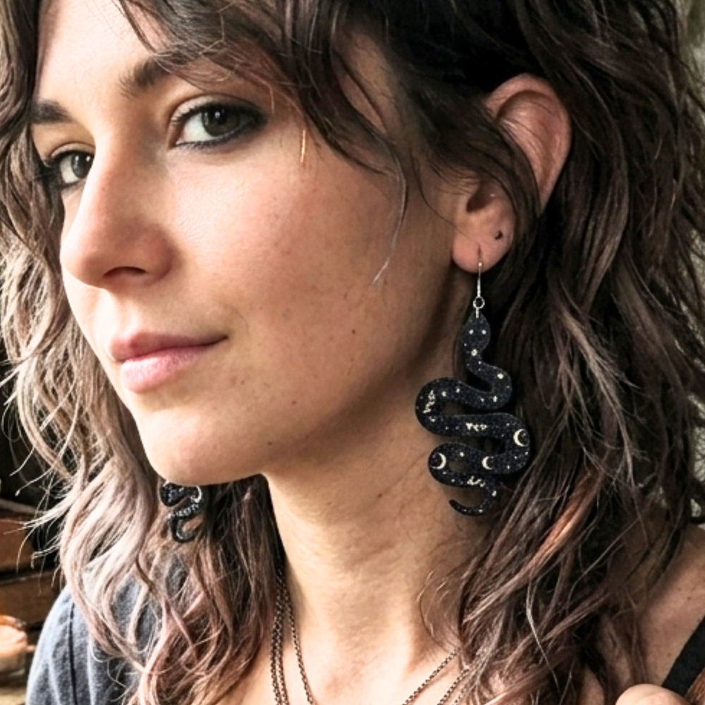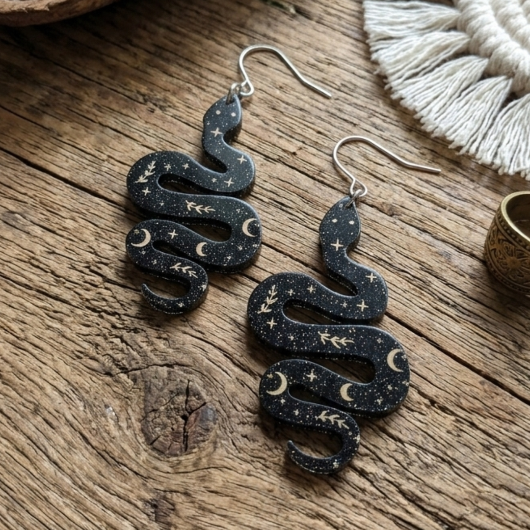 Celestial Serpent Drops | Black & Gold Cosmic Detail