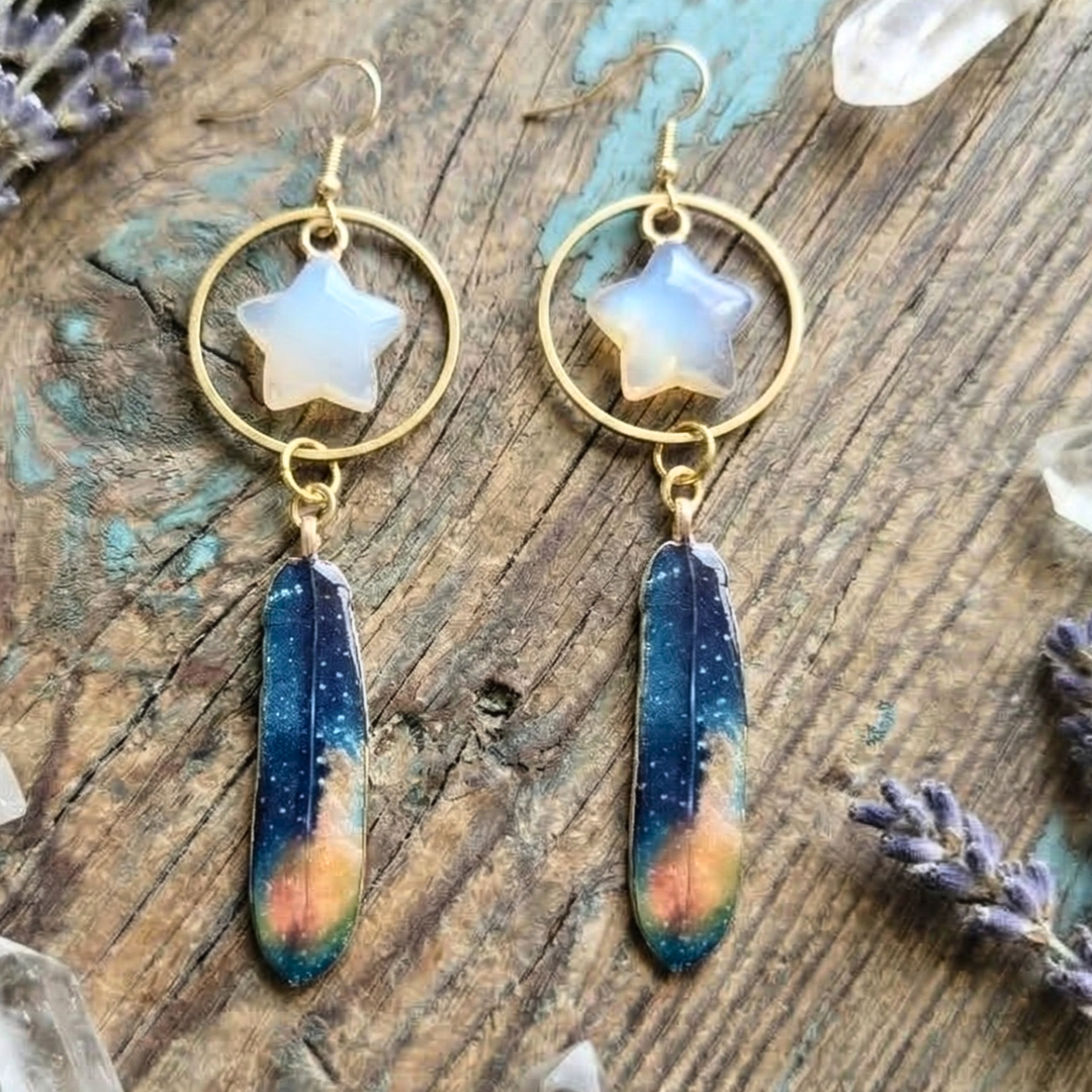 Celestial Flight Feather and Opalite Earrings