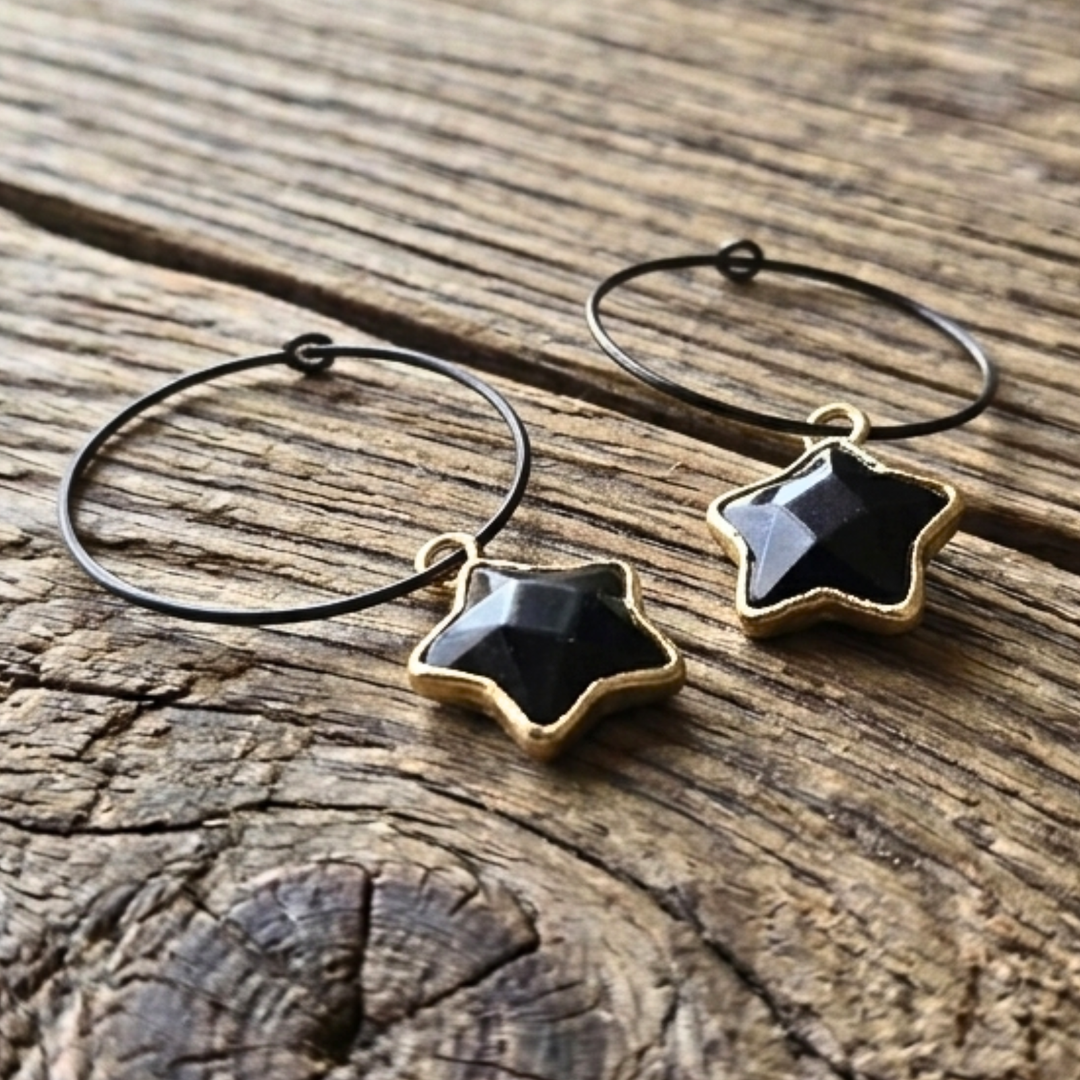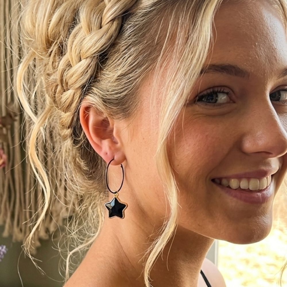 Celestial Obsidian Star Hoops
