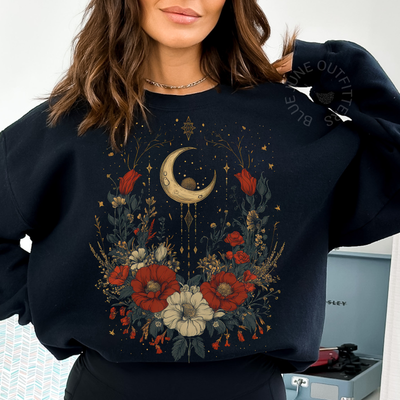 Waning Moon Celestial Flowers Sweatshirt | Cottagecore Crewneck