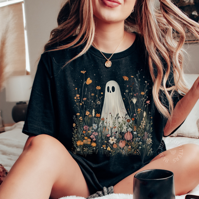 Ghost in Wildflowers Comfort Colors T-Shirt Cottagecore Halloween Tee