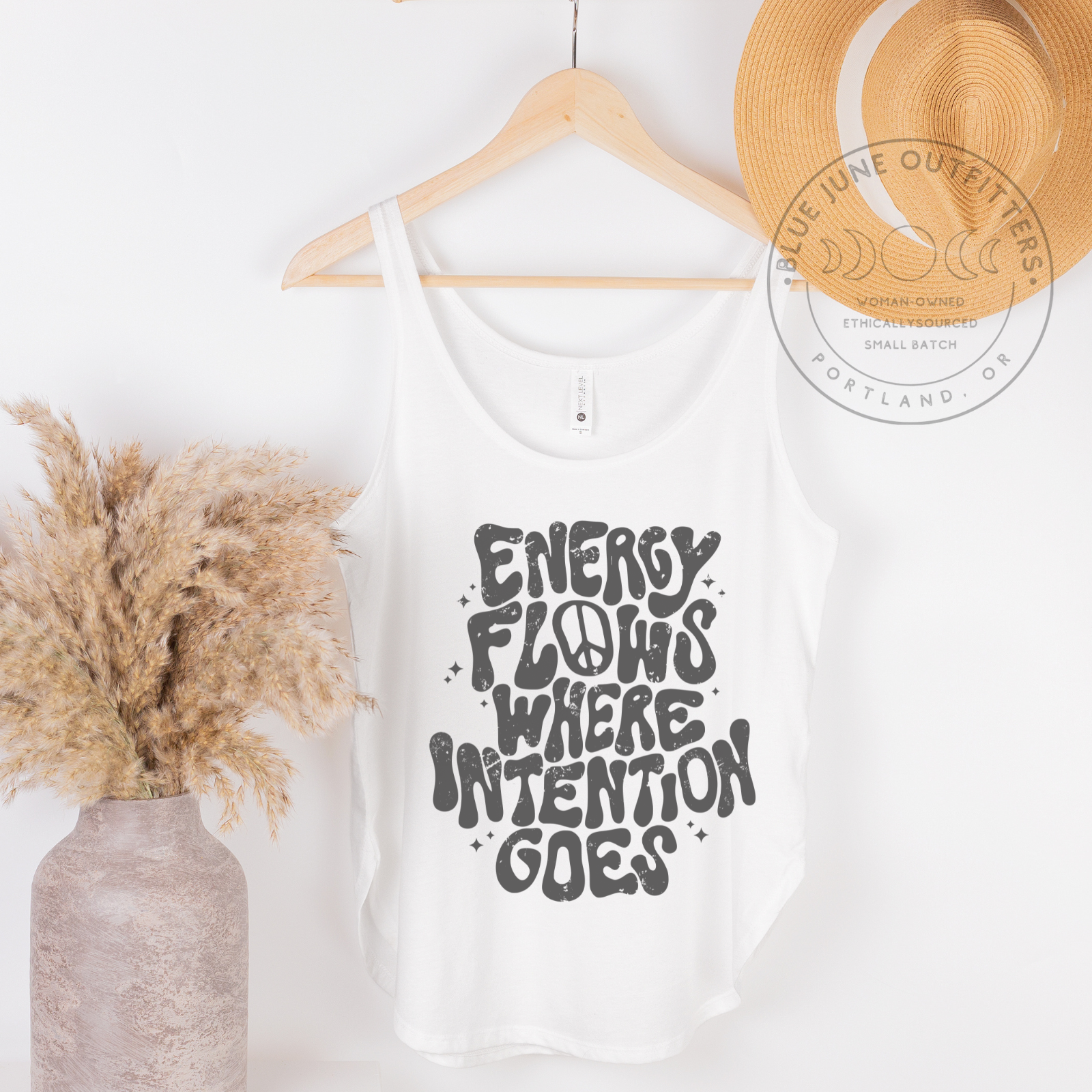 Move with purpose in our Energy Flows Where Intention Goes Tank — a feel-good favorite designed for grounded souls and big dreamers. Featuring clean, statement lettering with a mindful message, this piece is a wearable reminder to focus your thoughts, trust your path, and let the good energy follow.