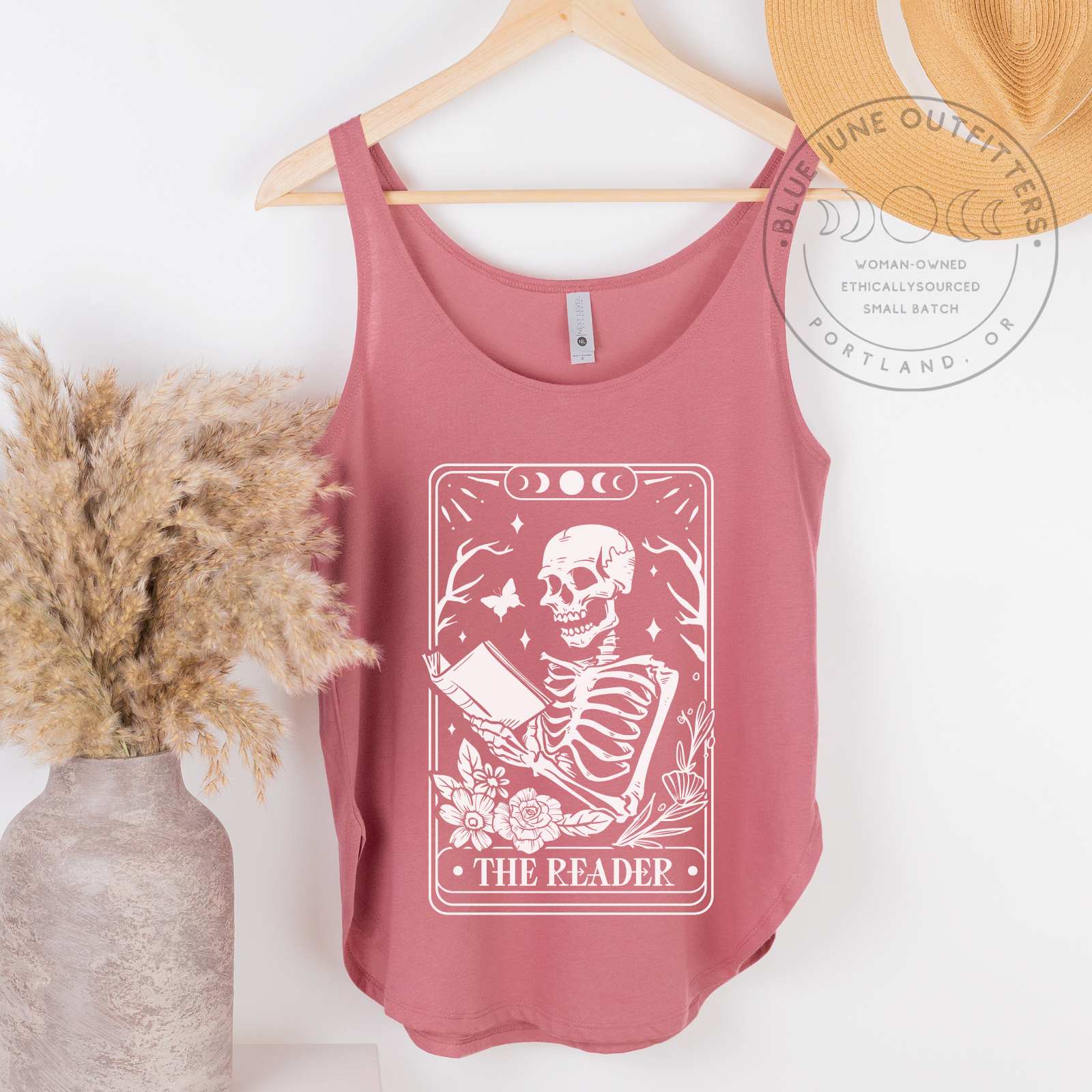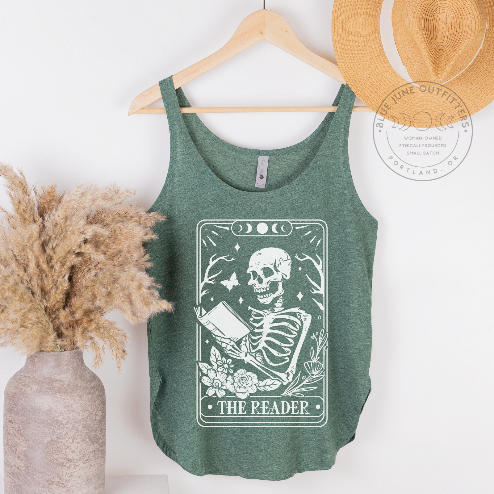 Step into your intuitive power with The Reader — a festival-ready tank that’s equal parts mystic and main-character energy. Inspired by vintage tarot aesthetics and chilling with timeless cool, this piece features a skeletal seer poised in a classic tarot frame — you’re not just wearing a design, you’re wearing a story.