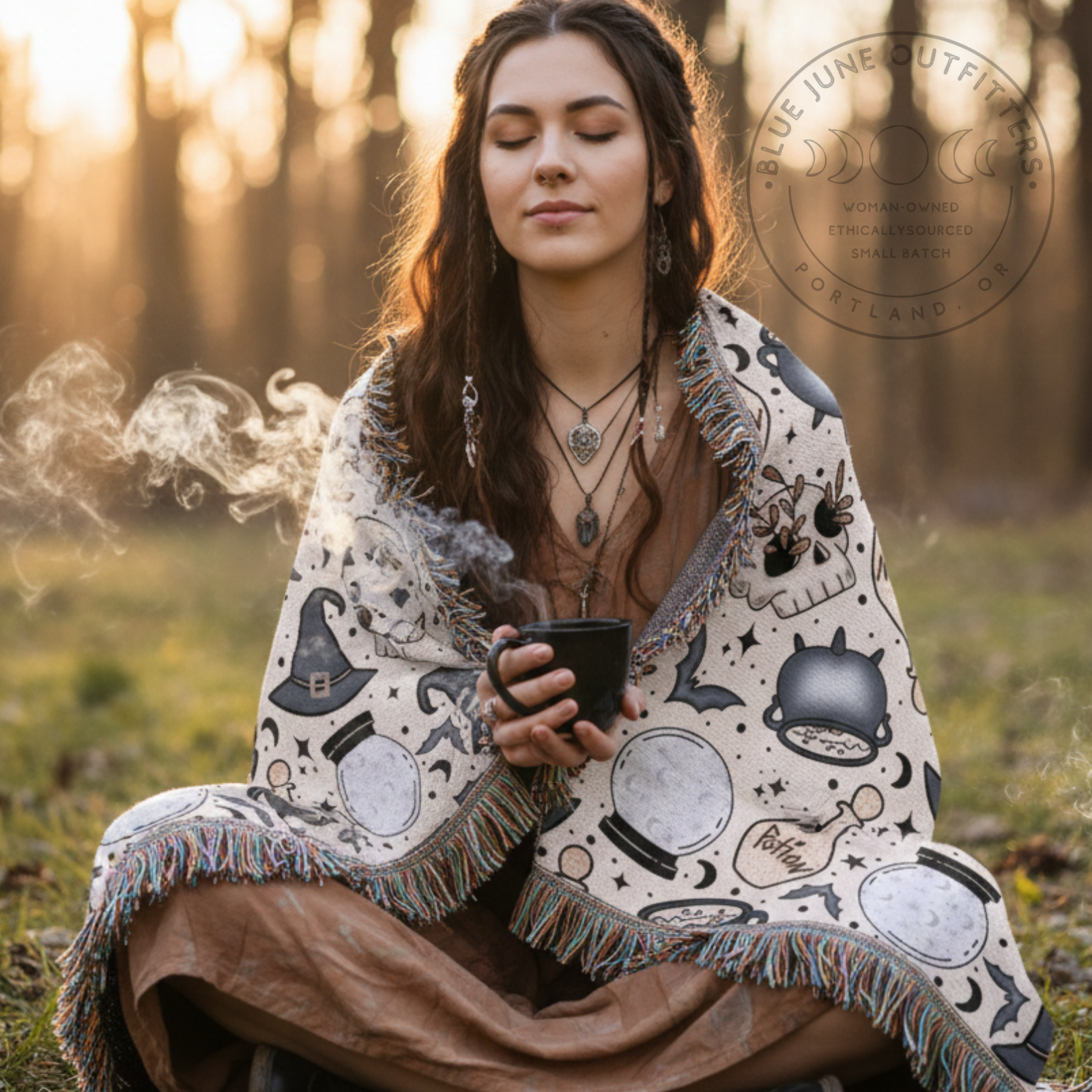 Cute, cozy, and just the right amount of spooky — this woven blanket is perfect for anyone who loves a little everyday magic.